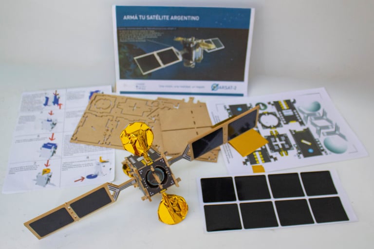 En este trabajo conjunto con ARSAT logramos realizar una maqueta a escala encastrable basada en el satélite de telecomunicaciones ARSAT-2, incorporando calcomanías y un instructivo dinámico que permite un fácil armado.